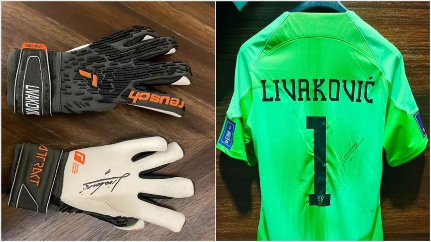 Hırvat kaleci Livakovic, 2022 FIFA Dünya Kupası'nda Brezilya'ya karşı mücadele ettiği çeyrek final maçında giydiği formayı ve eldivenini, Türkiye'nin Zagreb Büyükelçiliğine teslim etti.