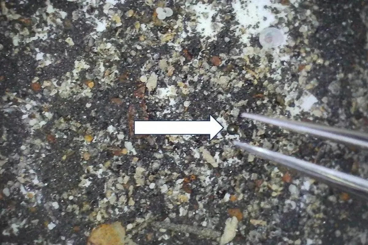 Nesnenin geride bıraktığı yüzlerce küçük manyetik küre yıllarca okyanus tabanında incelenmeyi bekledi.