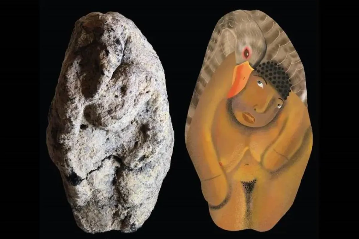 Ekip, 5 metre çapında yarım daire biçimli bir taş yapının içinde, bir kadın ve kuşu birlikte tasvir eden kilden yapılma bir heykelcik buldu.