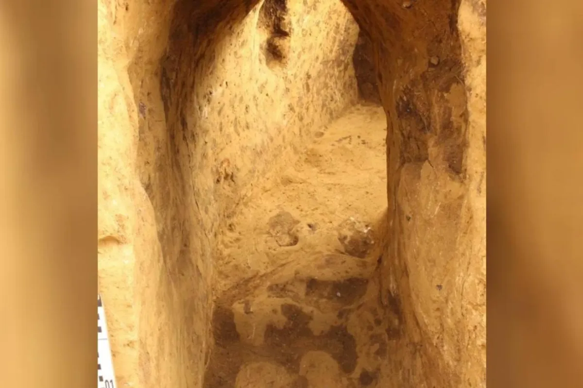 Araştırmacılar, Almanya'nın Dornberg köyü yakınlarında Taş Devri'nden kalma gömü alanını açığa çıkaran kazılar sırasında bu tünele rastladı.