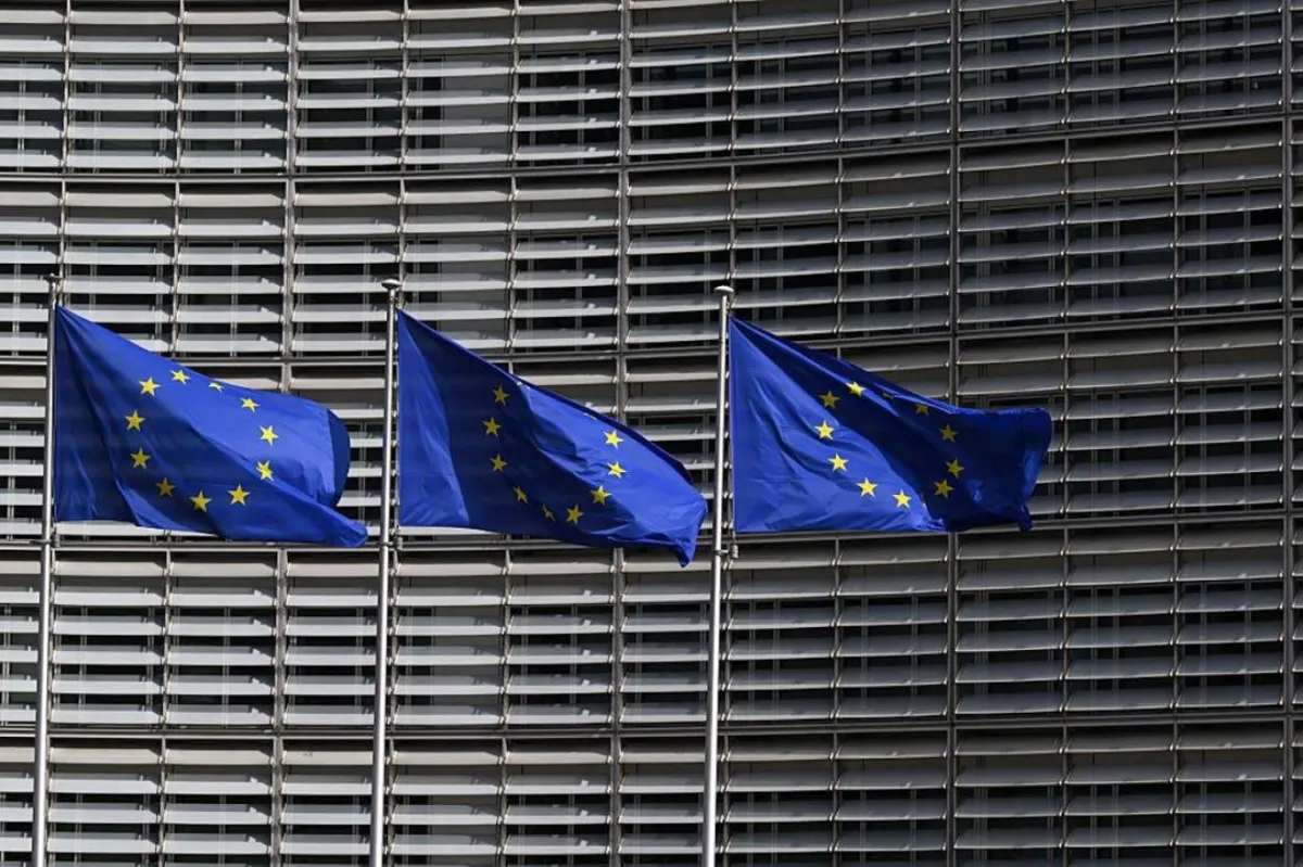 16 Mart 2026'da Brüksel'deki AB Komisyonu Genel Merkezi önünde Avrupa Birliği bayrakları dalgalanıyor (AFP)